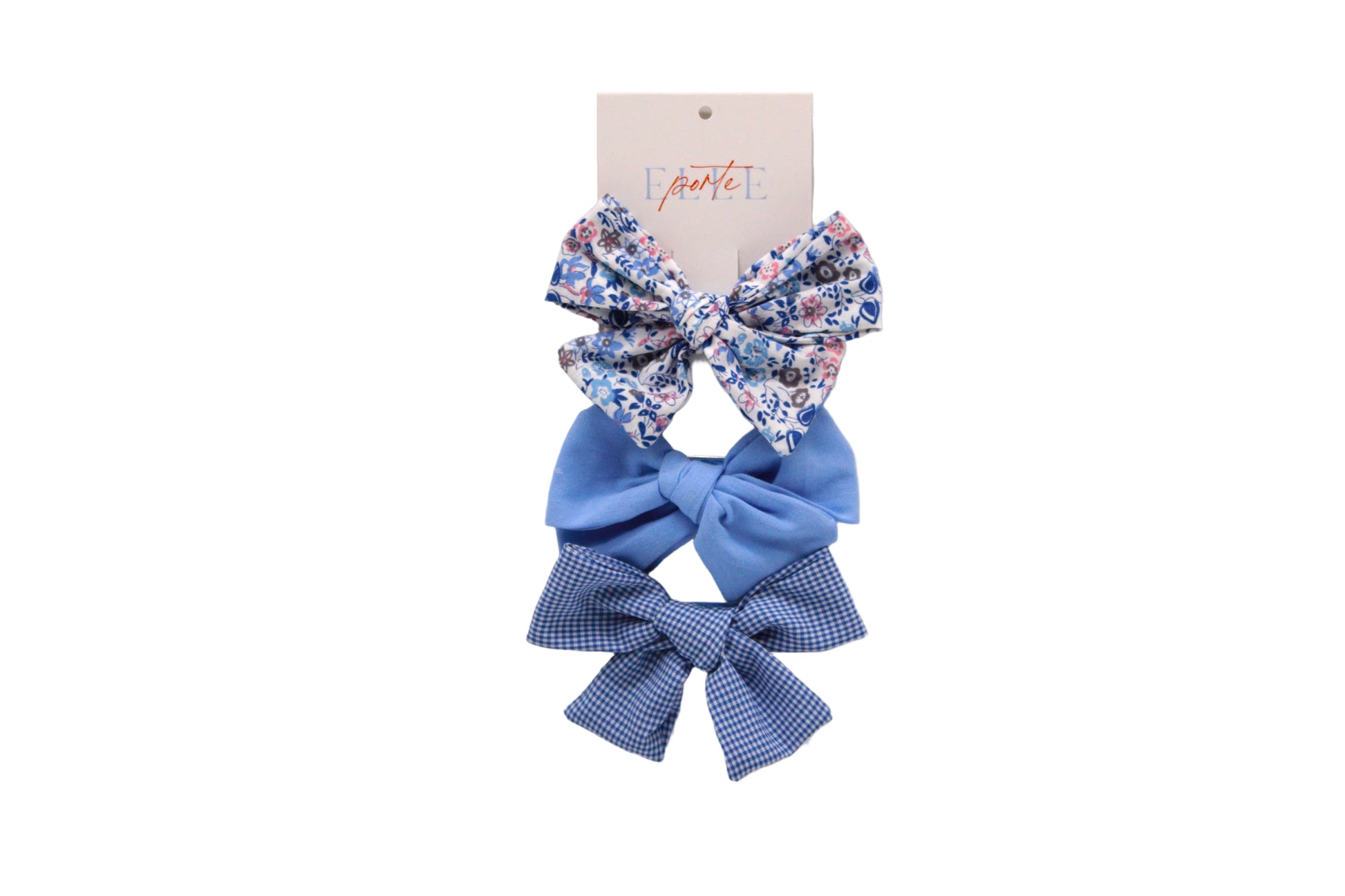 Experience a splash of summer with Elle Porte's 3 Pack Bows in Blue. This delightful set brings together mixed patterns, infusing a touch of charm into your little one's accessories. Crafted from cotton, these bows not only add a pop of color but also ensure comfort throughout the day. Perfect for everyday wear or special occasions, they make a cute addition to any kid's hair accessories collection. Enjoy the charm of Elle Porte.