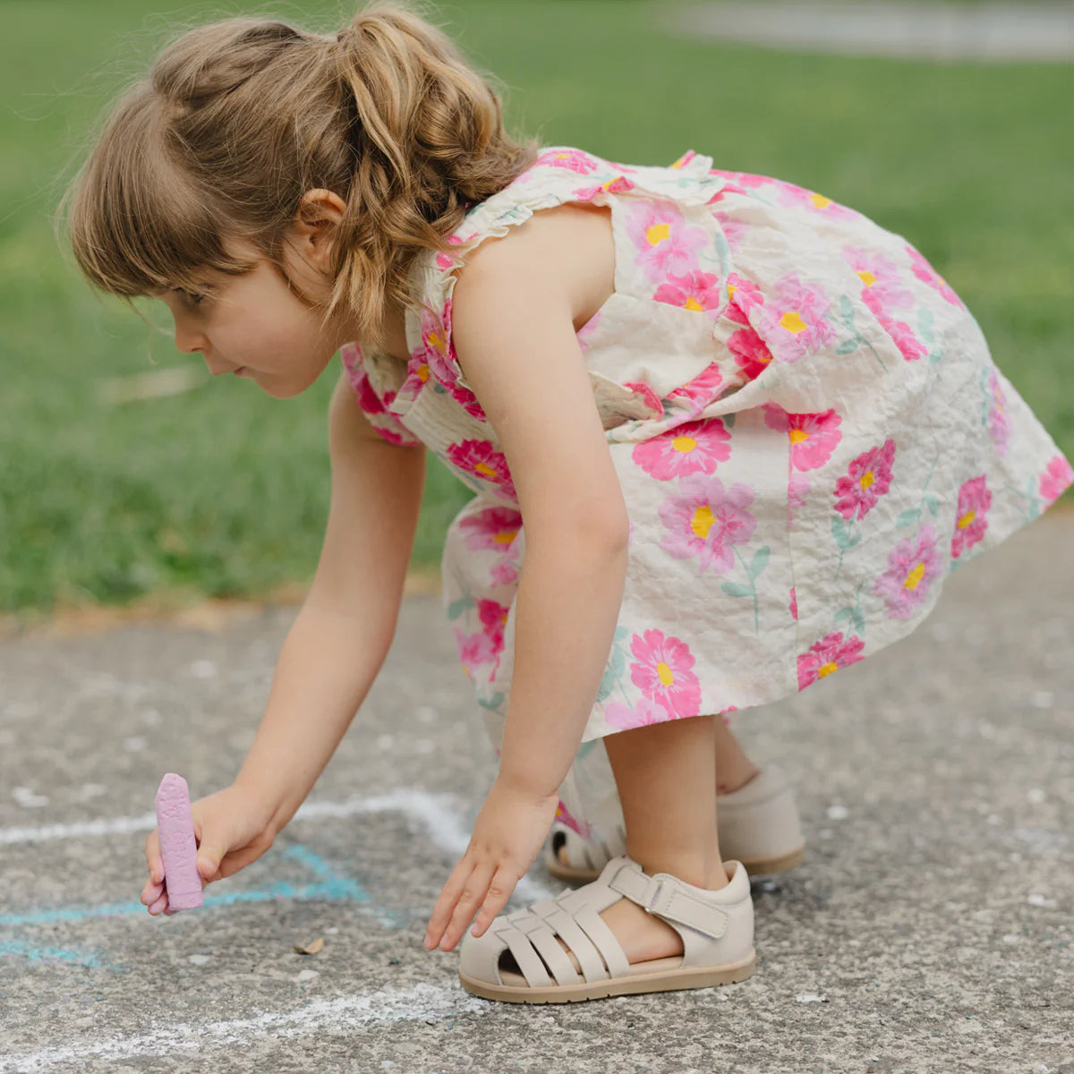 The Jamie Sandal with a T-bar-inspired design and gorgeous interwoven straps will bring both comfort and style this summer. The D-ring detail on the velcro strap provides increased adjustability making this sandal a perfect fit for a range of foot shapes. Complete with a closed supportive heel, ankle padding, and cushioned footbed, the Jamie will be their favourite shoe this season. The Jamie Sandal has been granted the American Medical Podiatry Association Seal of Approval which recognises this style as a shoe that promotes good foot health.