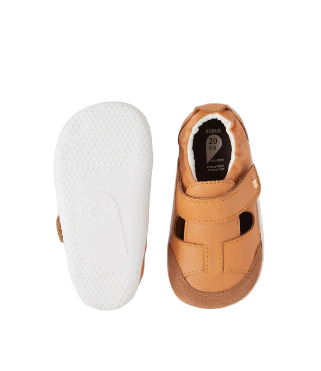 Crafted from buttery-soft leather with detailed styling and an adjustable strap, the Beau is a beautiful, learning-to-walk shoe. With a minimalist version on a fisherman's weave in the toe offering breathability, reinforced stitching for durability and conditioned leather around the ankle cuff for absolute comfort, little feet will rejoice with each step. Fitted for our ultra-flexible and unique Xplorer sole with speckles, the Beau is ideal for todldlers and first walkers.