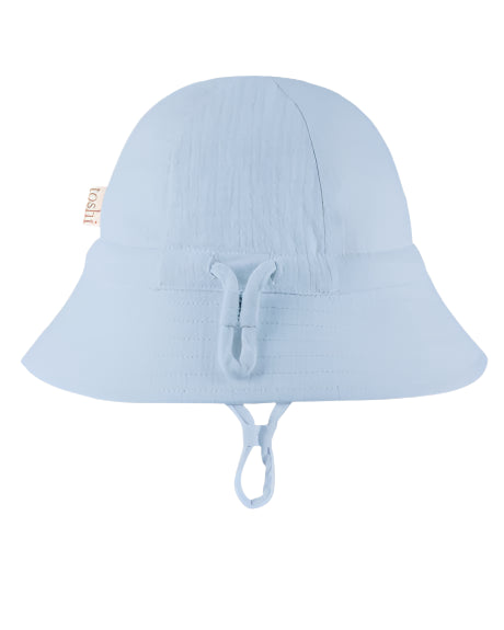 Toshi Bell Hat Sammy is crafted from the finest quality certified 100% organic cotton yarn. Toshi Bell Hat Sammy is a flattering bell shaped hat. The cheesecloth fabrication features a supremely soft and gently nurturing texture. The UPF 50+ UV rating indicates maximum sun protection. A head tie with soft cotton toggle creates adjustable sizing. The chinstrap with soft cotton toggle secures the hat and offers ease of wear. The security release clasp on the chin tie is designed to enhance wearer safety. The sunhat is fully lined for increased comfort.