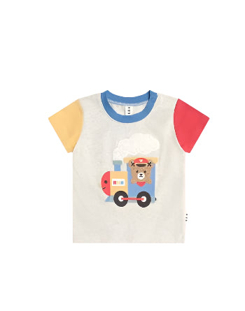 The perfect everyday tee, but with a choo choo twist. This round neck t-shirt is made from buttery-soft organic cotton in an off white marle and features a choo choo train embroidered on the tummy. Baby sizes feature stainless steel shoulder snaps for quick changes. 95% organic cotton, 5% elastane Off-white marle Designed in Melbourne