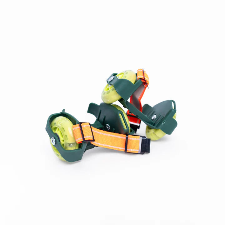 Clip-on heel skates that turn any pair of sneakers into light-up skates.