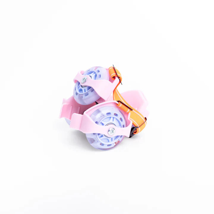 Clip-on heel skates that turn any pair of sneakers into light-up skates.