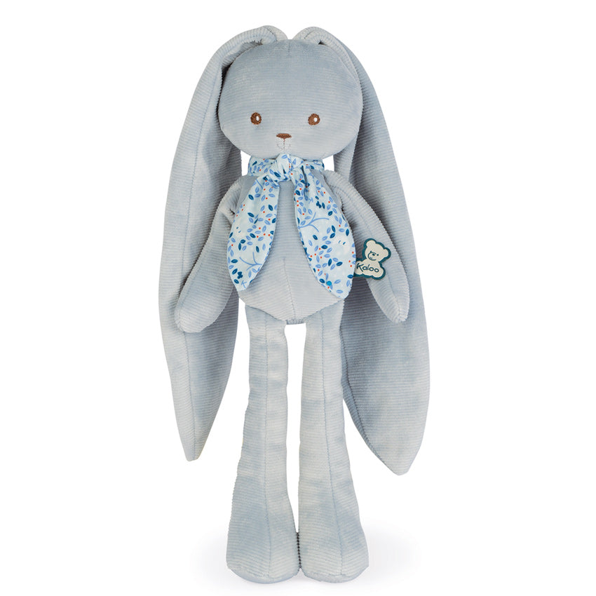Presented in an FSC giftbox you can customise with a message, whichever colour you choose, the Kaloo Lapinoo range is the perfect gift. This chic steel blue rabbit has beautiful long arms, legs and ears that are ideal hand holds for baby. The ears are also brilliant to tie him on to your car seat, cot or pram, or even the handle bars of your bike when you're a bit older! Created from super soft corduroy, Blue Rabbit has a printed scarf to match his body and a Kaloo signature embroidered K on his foot. Give him a wash in the machine and pop him into the drier so he always looks his best and ready for an adventure or a bedtime cuddle.