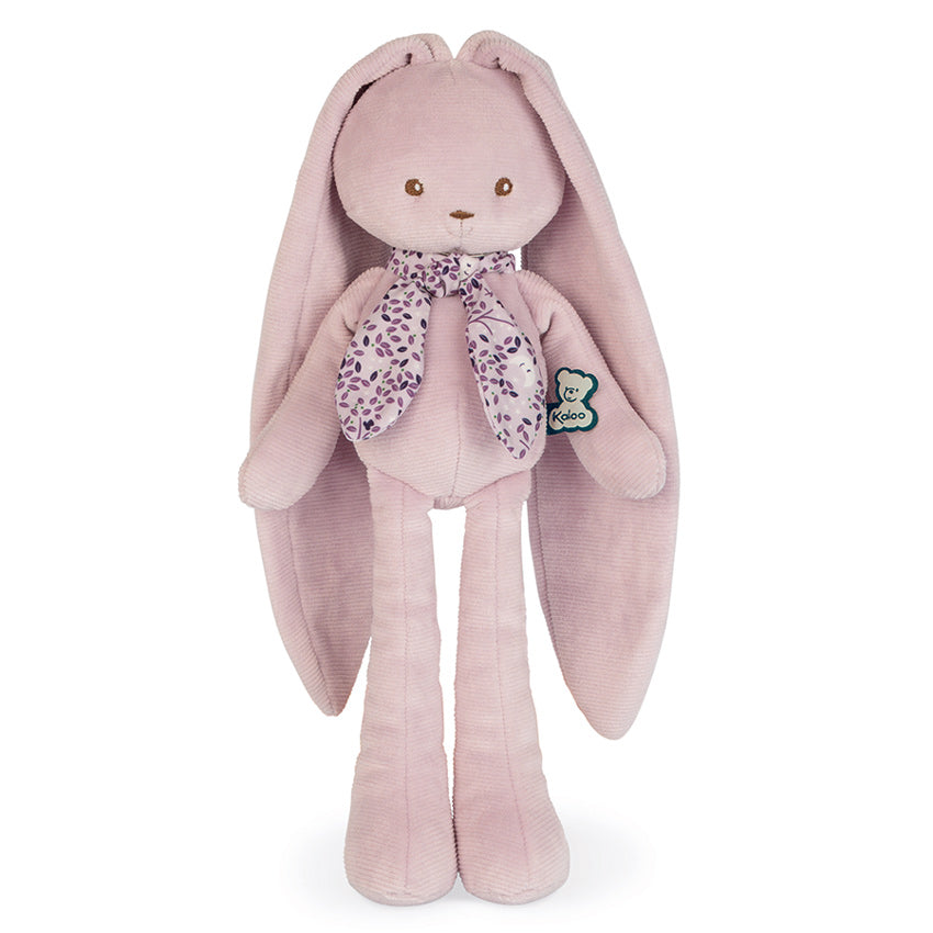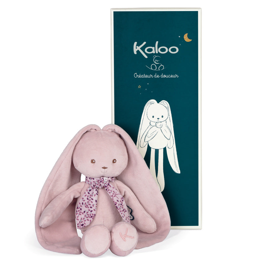 Delightful pink rabbit has elegant long arms, legs and ears that are ideal hand holds for baby. Give her a bath in the washing machine and then pop her into the drier so she always looks her best and ready for an adventure or a warm bedtime snuggle. Her ears are also perfect to tie her on to your car seat, cot or pram, or even the handle bars of your bike when you're a bit older! Whichever colour you choose, the Kaloo Lapinoo range is the perfect gift that is presented in an FSC giftbox you can customise with a message. Created from super soft corduroy, Pink Rabbit has a printed scarf to match her body and a Kaloo signature embroidered K on her foot.