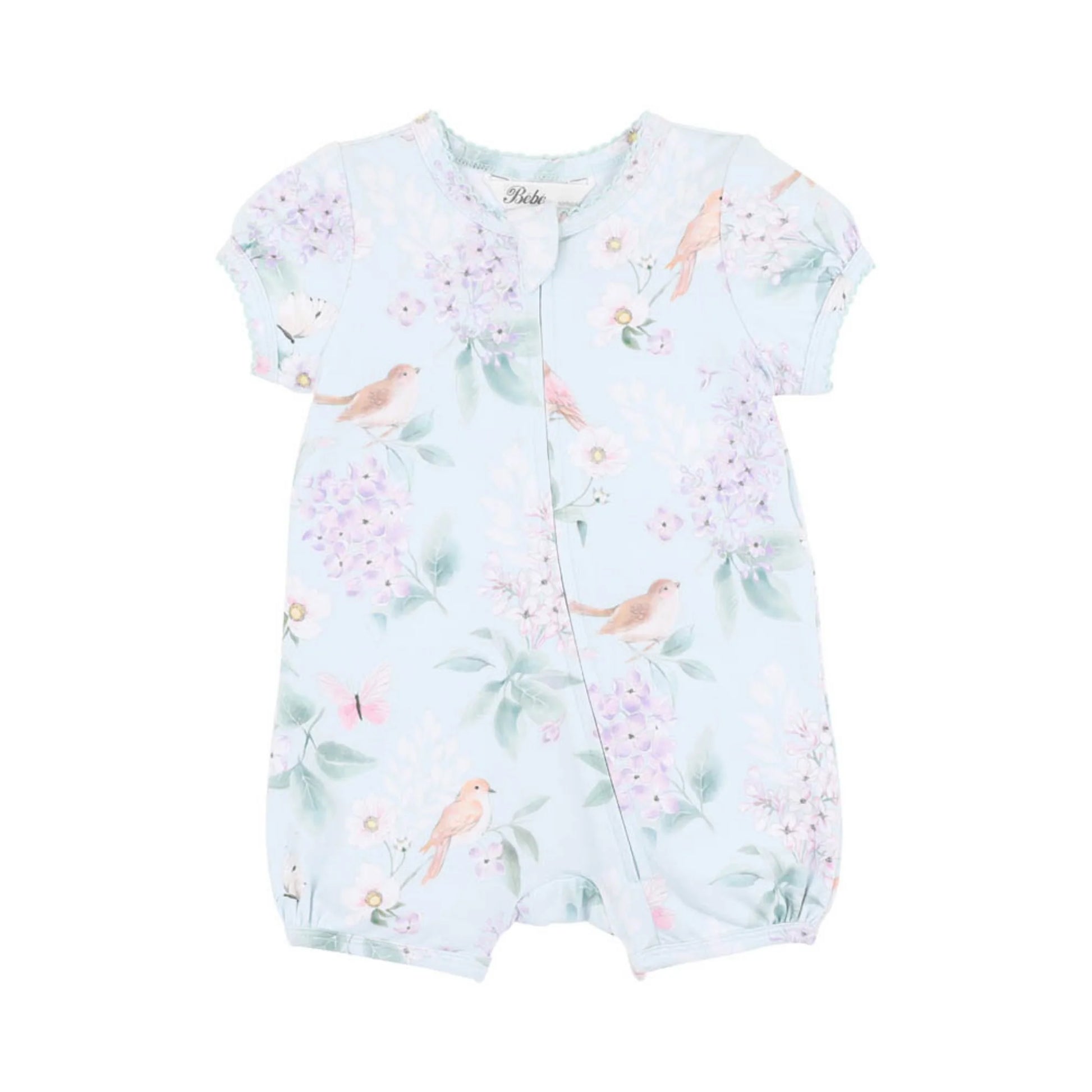 Let your little one flutter into the season in this enchanting romper, where soft skies and garden blooms meet sweet birds and butterflies. Crafted in a dreamy pastel palette, the exclusive Bébé by Minihaha print brings a whimsical storybook feel to everyday dressing. Designed with comfort in mind, it's made from a breathable cotton elastane jersey and finished with delicate picot trims. Pair it with the Madelyn print headband for a picture-perfect outfit that's as charming as it is practical.