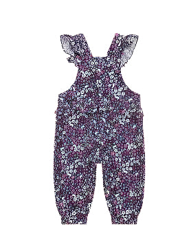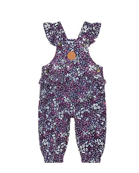 - Lightweight soft cord 90's style frill overalls with all over midnight floral print
