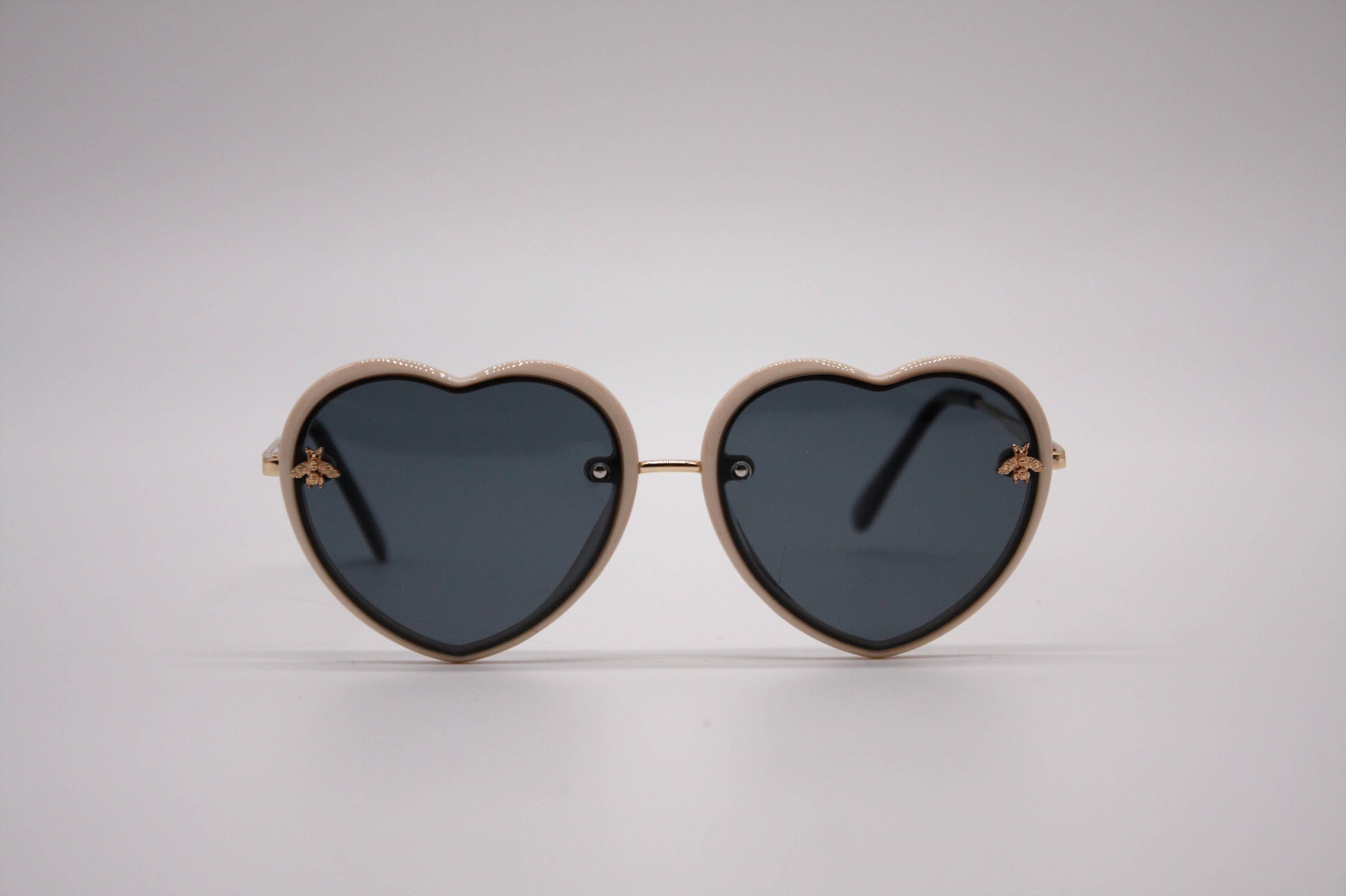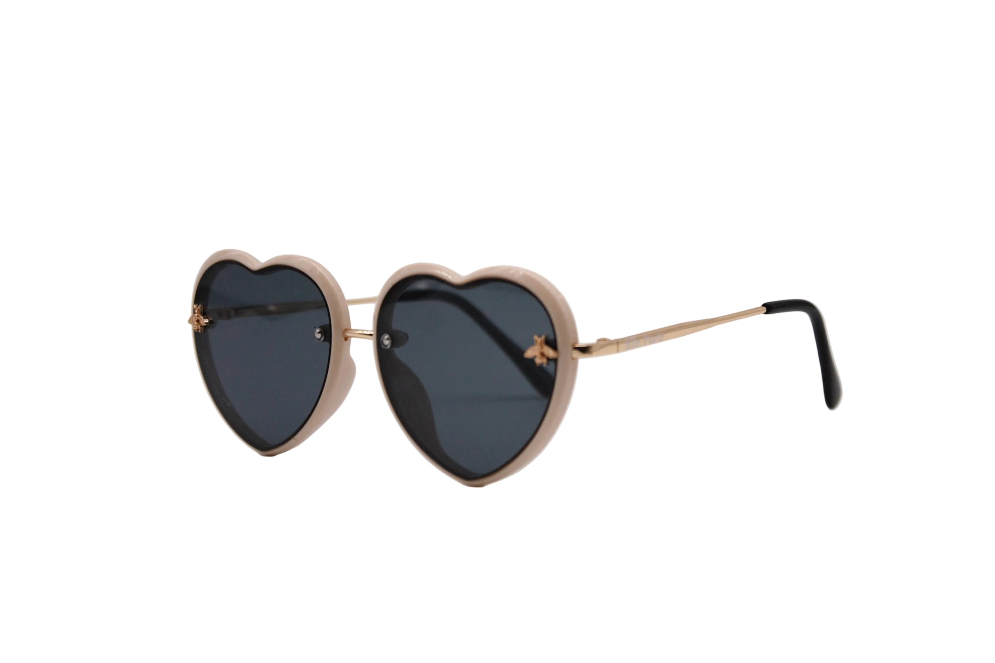 Cream heart shaped frame children's sunglasses with baby bee detail