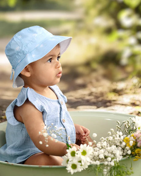 Toshi presents the classic Sunhat Spell, ideal for children of all ages. The sunhat has a broad and well-structured brim. The UPF 50+ UV rating indicates maximum sun protection. The head tie with toggle creates adjustable sizing. A chin tie with toggle secures the hat for ease of wear. The security release clasp on the chin tie is designed to enhance wearer safety. The classic Toshi Sunhat is crafted from the finest quality 100% cotton and is fully lined for additional comfort.