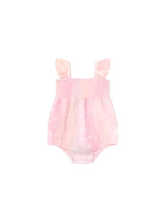 Super cute pastel rainbow tulle short playsuit with all over heart flock print
