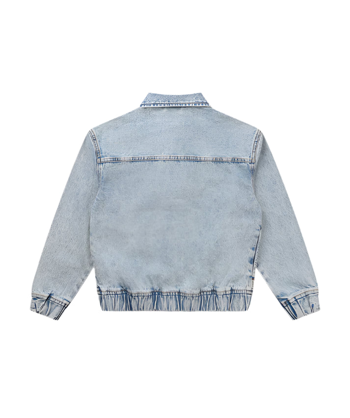 Channel 90s vibes with this vintage-inspired denim jacket! Featuring a zip front, elastic cuffs, and a classic bomber design, Complete with pockets for added practicality, this is a must-have layer for your little trendsetter.